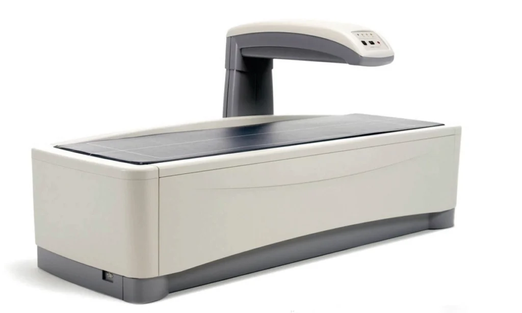 Exame de imagem que avalia a densidade mineral dos ossos, sendo fundamental para o diagnóstico e acompanhamento da osteoporose e osteopenia.
